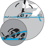 Inserire la reggetta superiore prima nella cesoia e poi sul cricchetto e ruotare la leva in avanti per azionare il cricchetto. Continuare con il tensionamento.